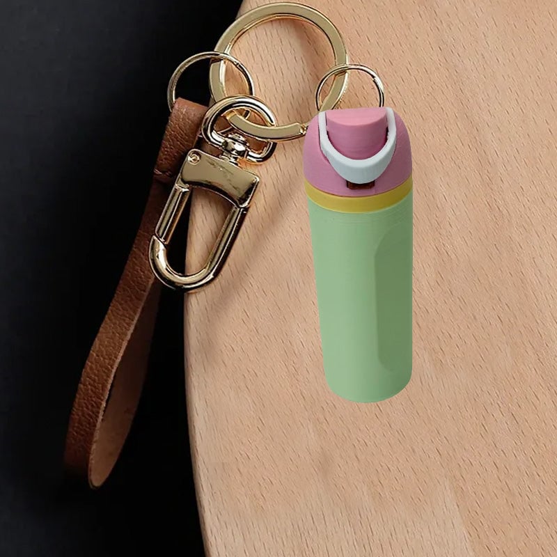This bottle keychain has a funky shape and adopts the current popular design elements. Whether it is hanging on your bag or matching with your car keys, it can instantly become a focal point and attract people's attention, so you can easily walk in the forefront of fashion.